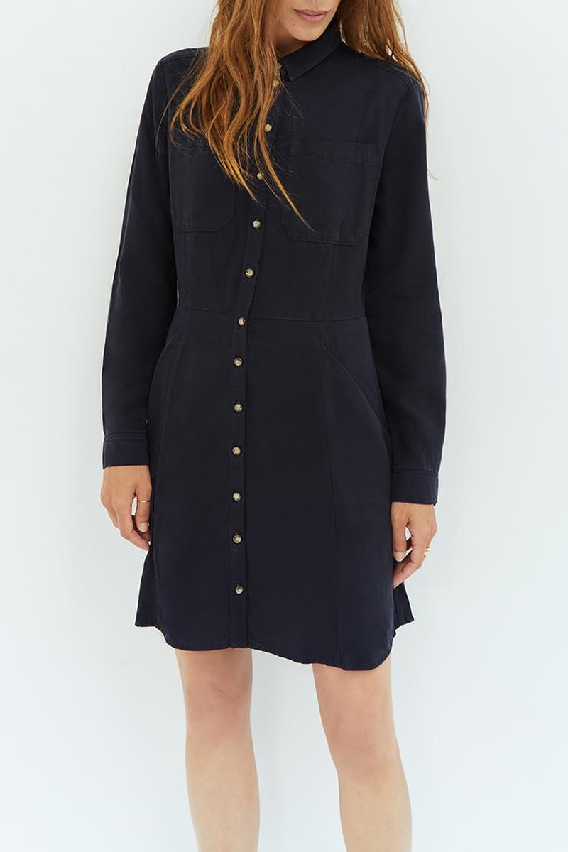 Vestido-camisa de mangas compridas.
