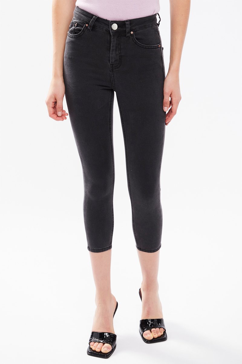 Calças de ganga skinny 7/8 cintura subida- Preto - Pequeno