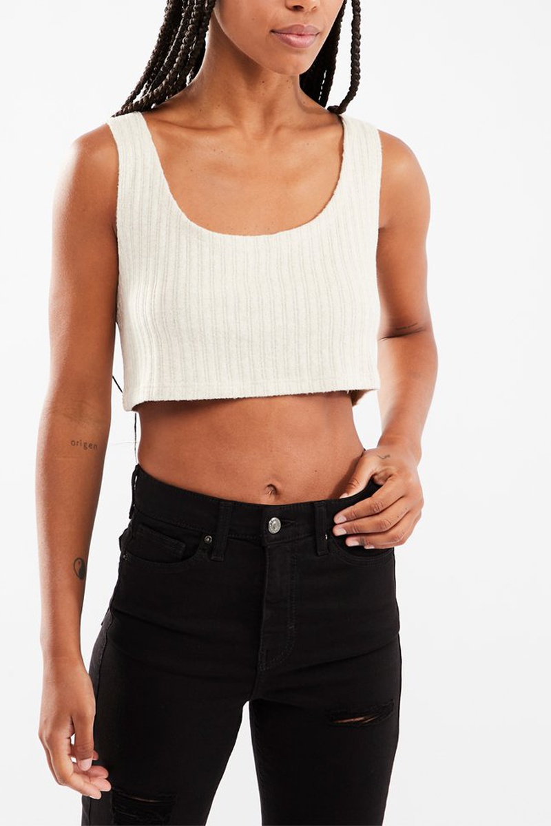 Crop top pequeno em malha canelada.