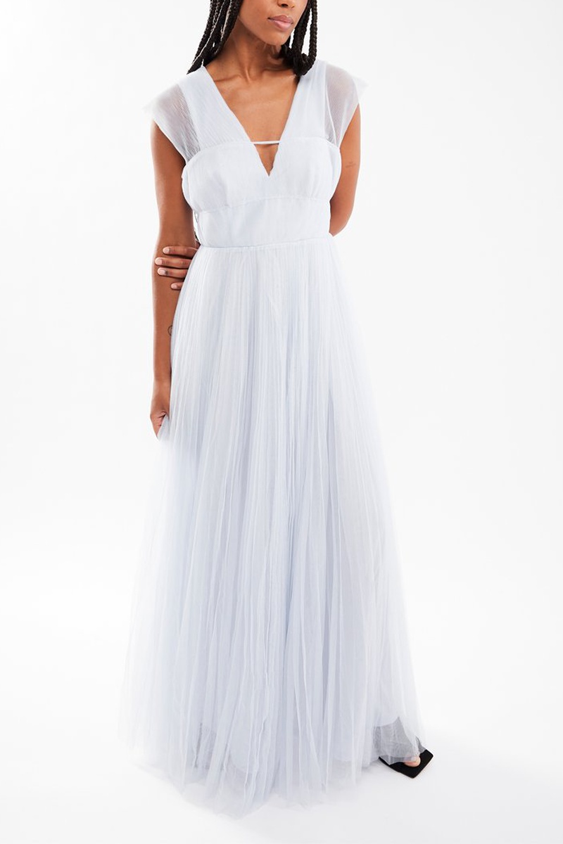 Vestido comprido em tule.