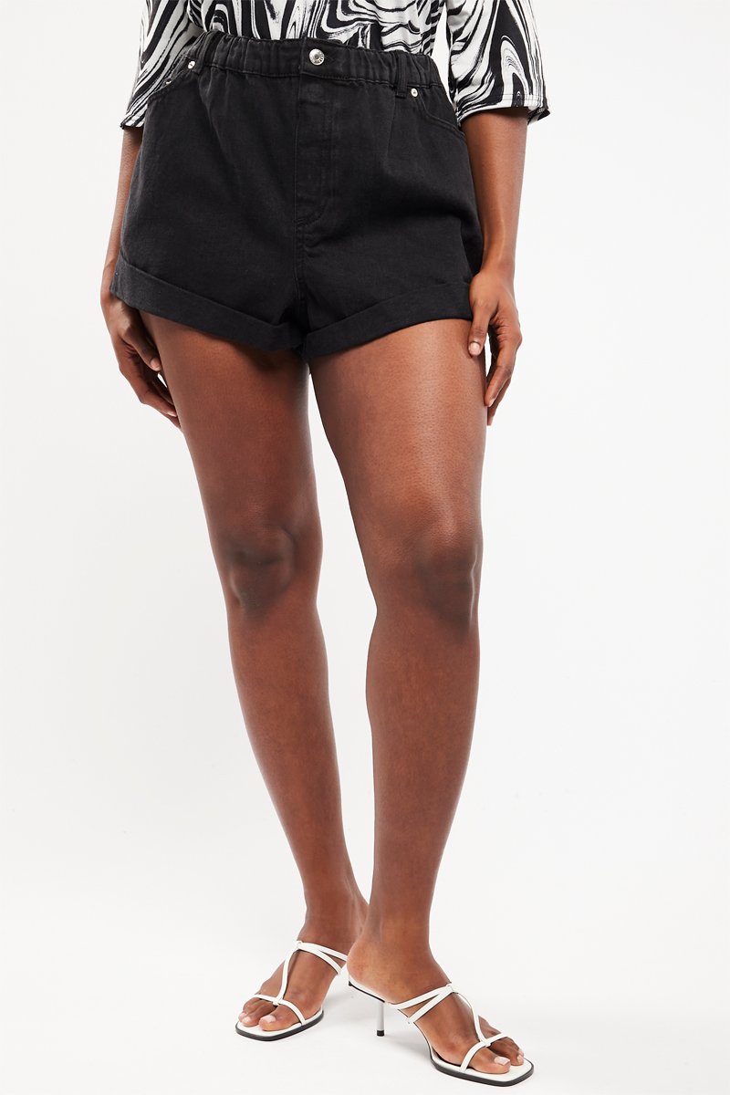 Calções de ganga de cintura subida - Preto - Curve