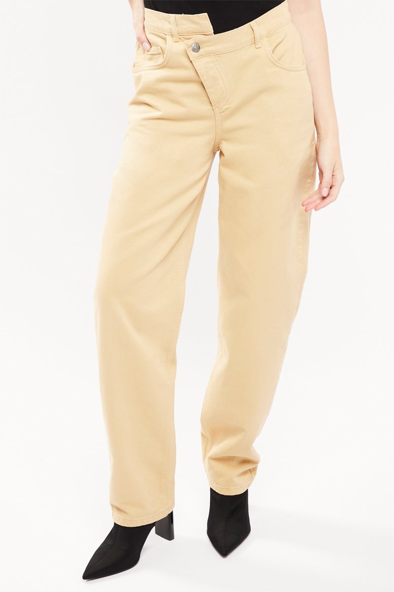 Calças de ganga cintura subida - Bege