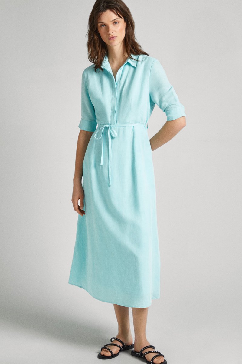 Vestido-camisa em linho - Azul