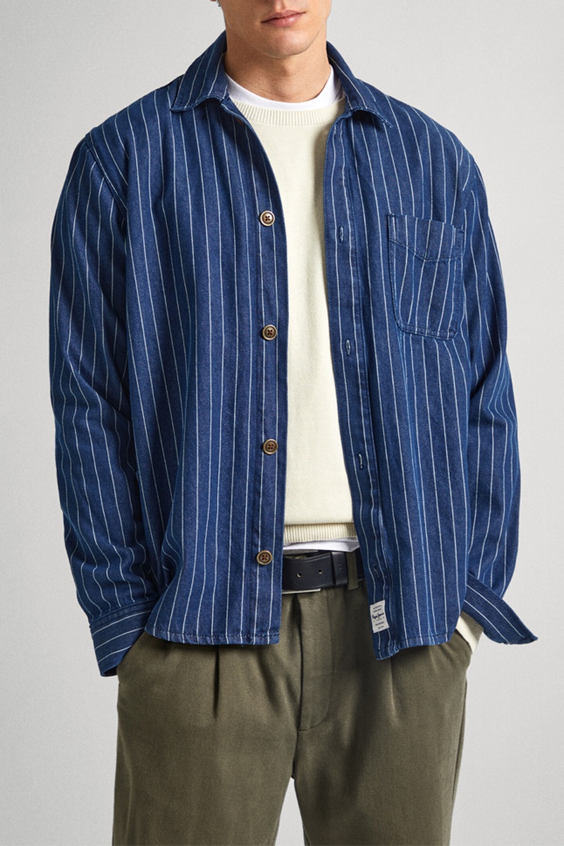 Camisa de ganga relaxed - Azul-marinho