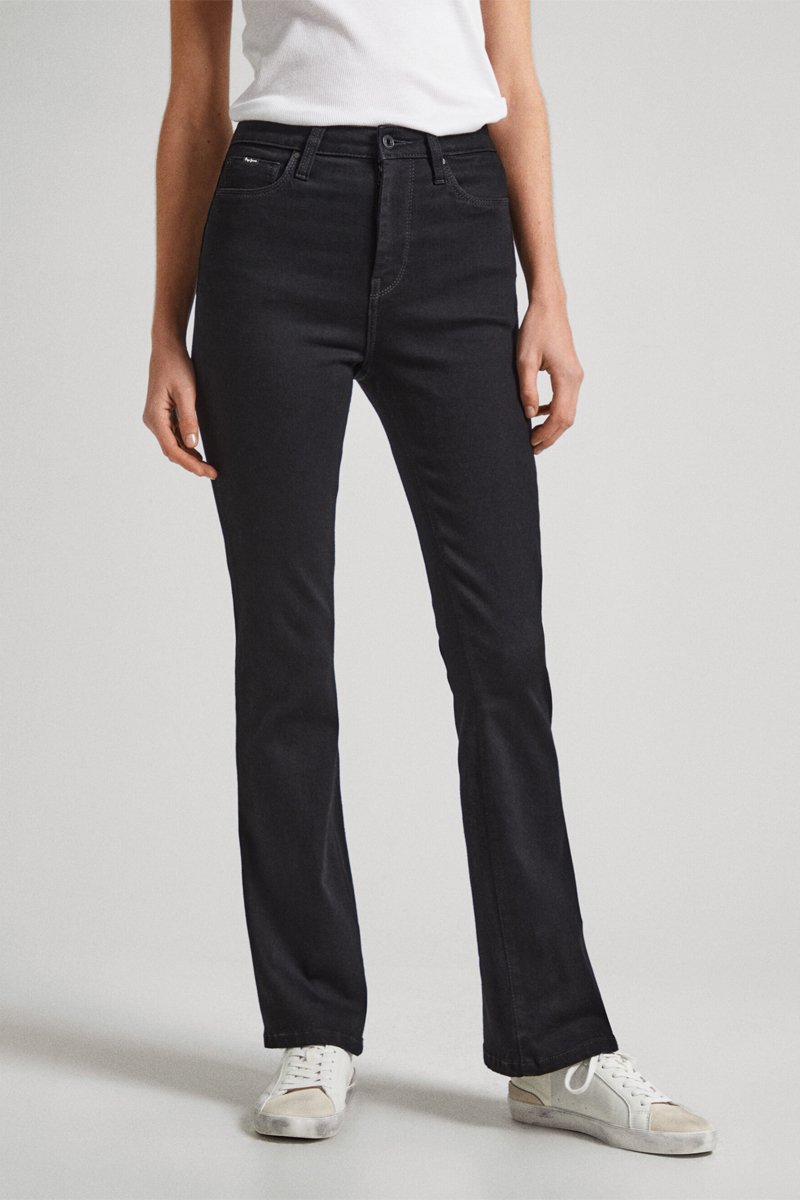 Calças de ganga flare cintura alta - Preto