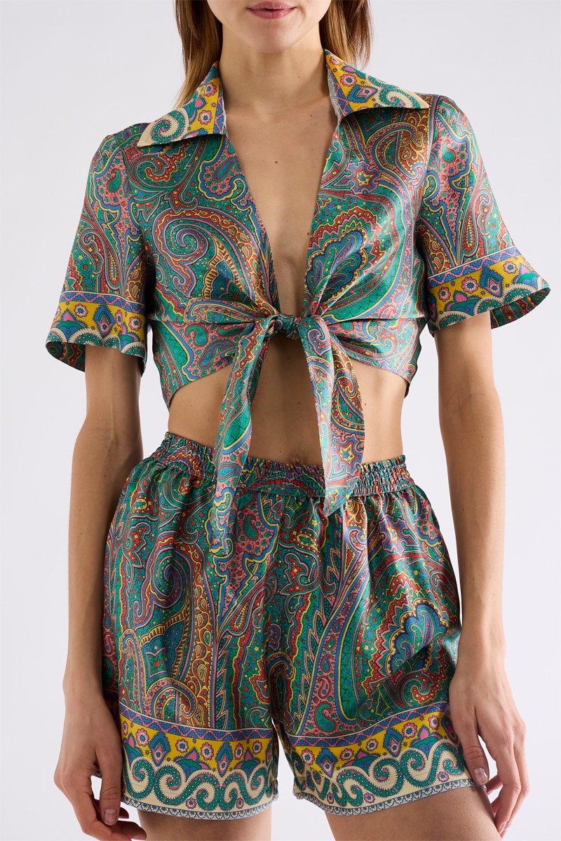 Crop top em seda - Turquesa