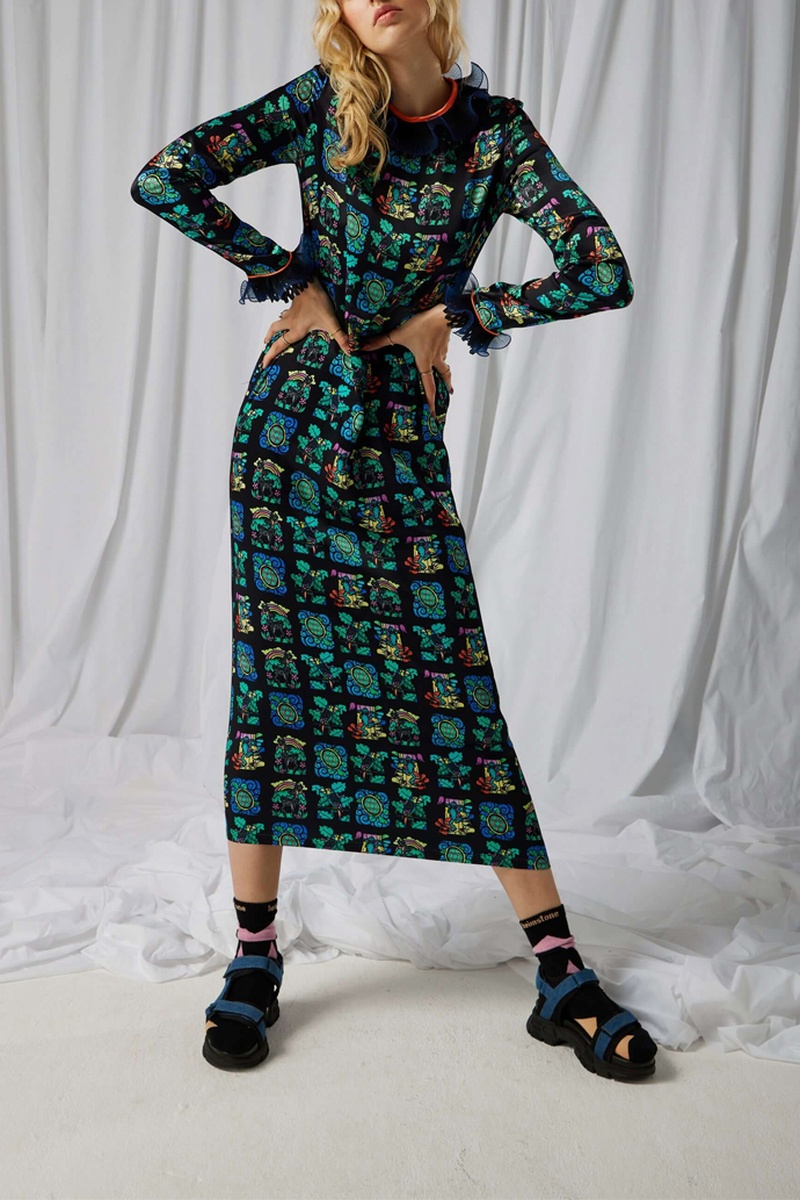 Vestido comprido Marshall - Preto e verde