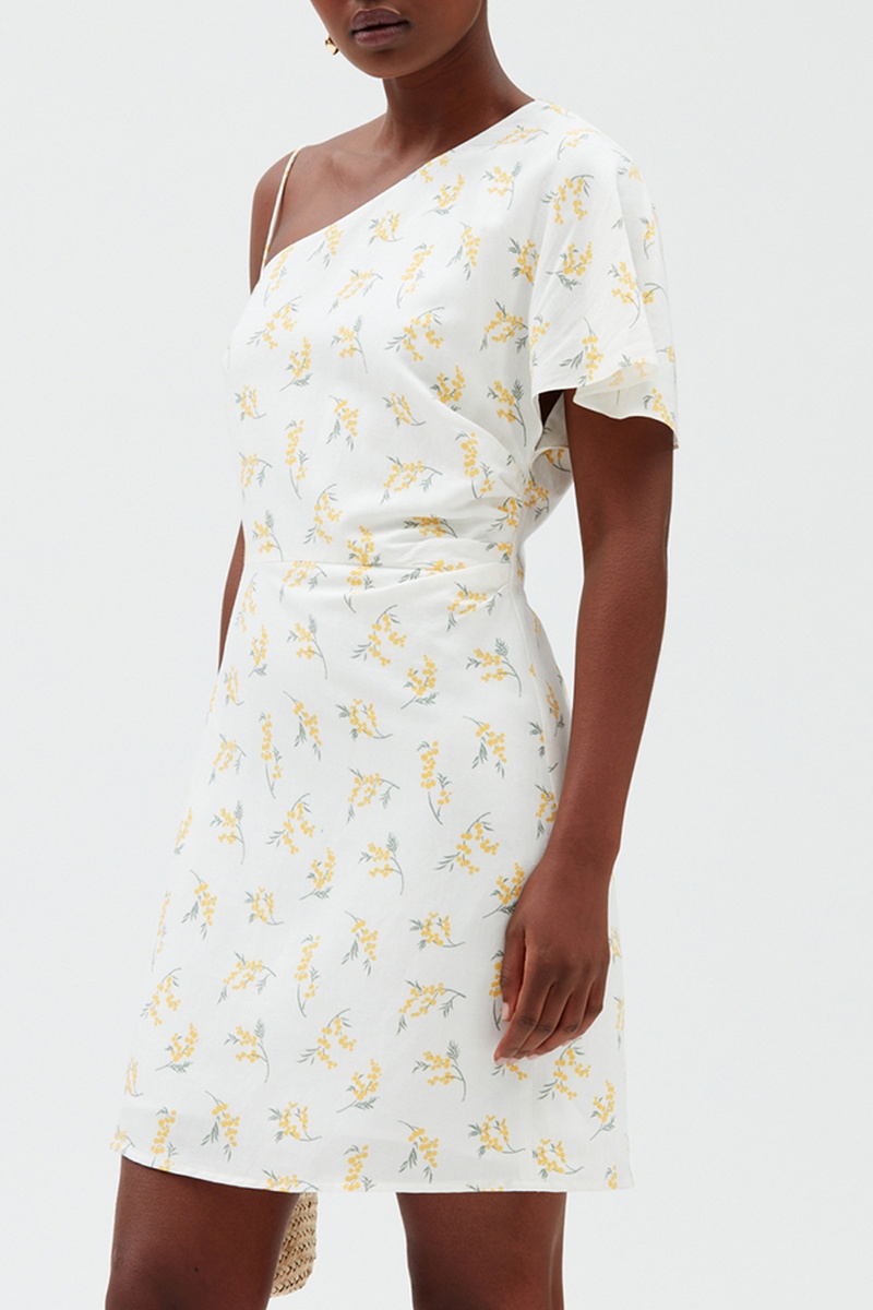 Vestido semi-comprido assimétrico - Branco e amarelo