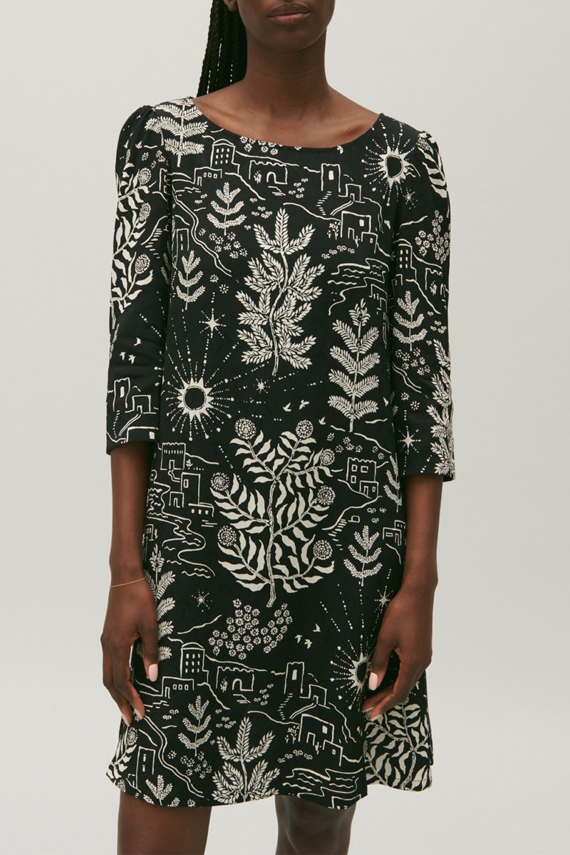 Vestido trapézio - Preto e cru