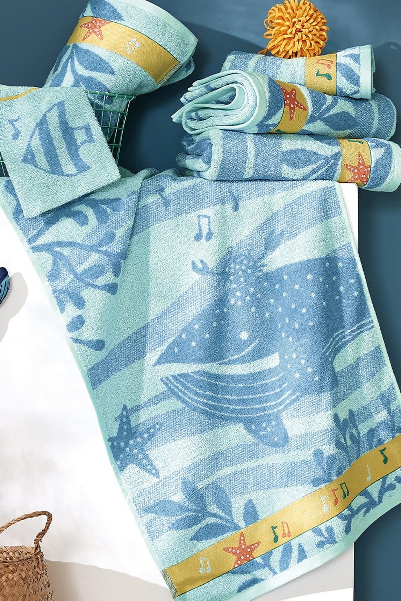 Toalha de mãos L'océan en fête - Azul - 50 x 90 cm