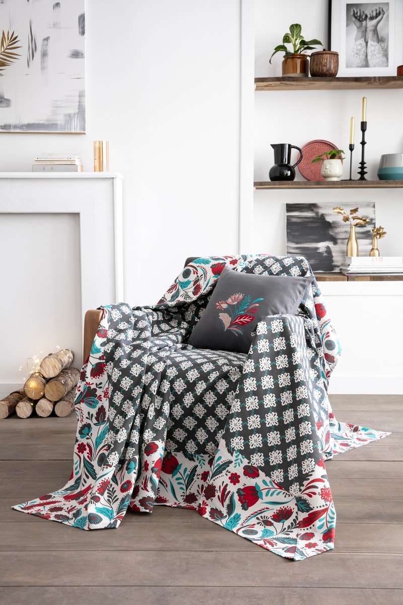 Manta Sur un air de Polka - Cinzento e vermelho - 150 x 150 cm