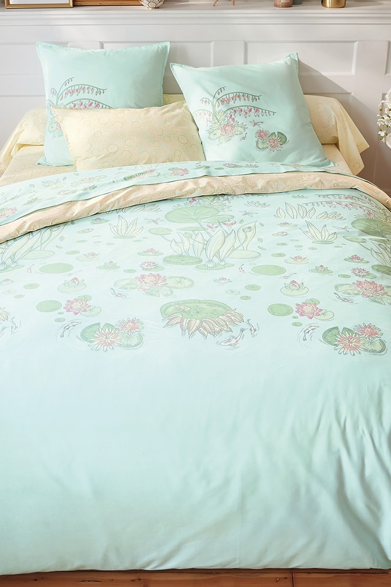 Capa de edredão reversível Rêves de nymphéas - Verde-água