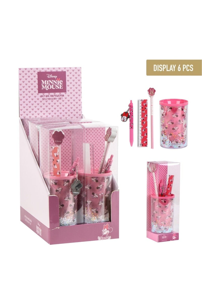 Coffret de papelaria suporte para lápis Minnie Disney - 6 peças - Rosa
