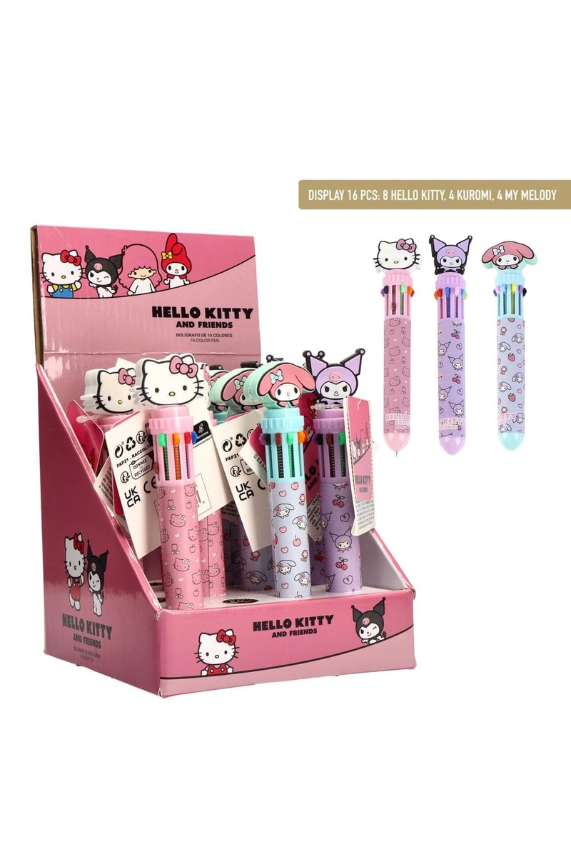16 canetas Hello Kitty Sanrio - Tinta verde, amarelo e violeta