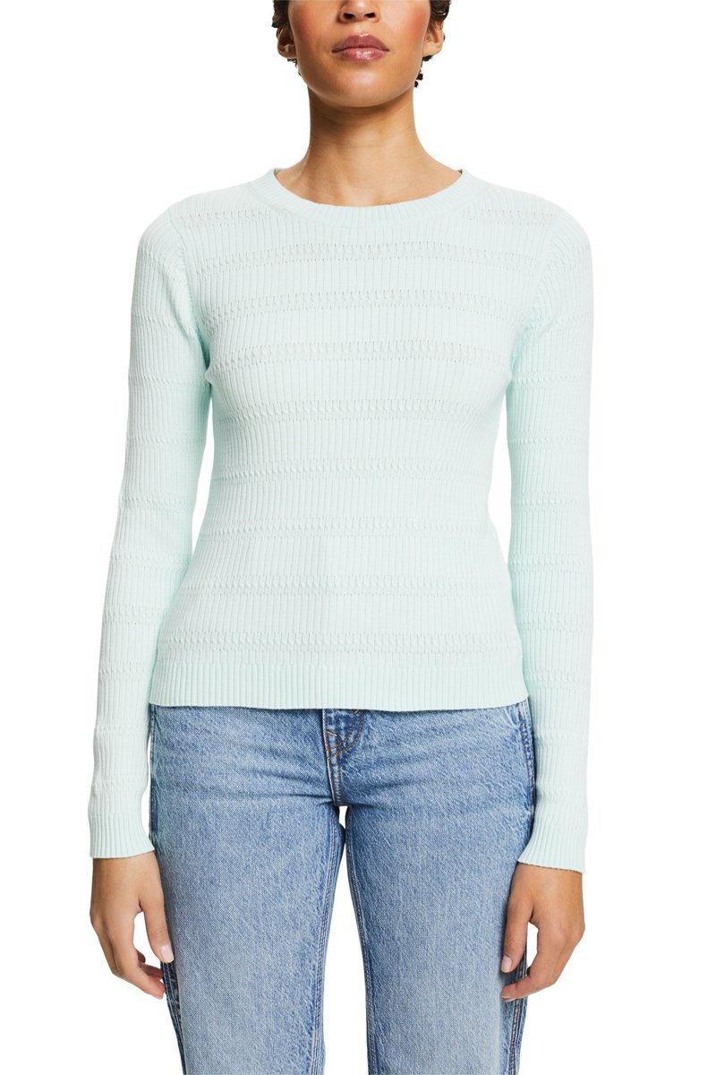 Camisola em malha canelada.