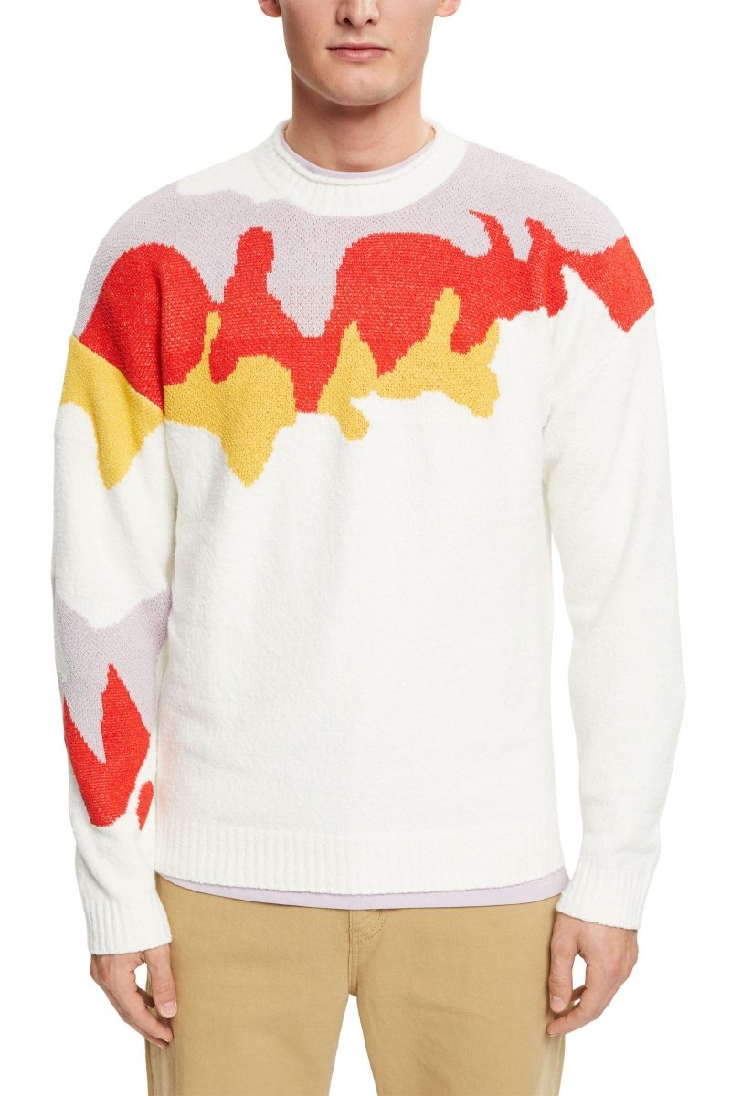 Estampado decorativo na manga direita, à frente e atrás.