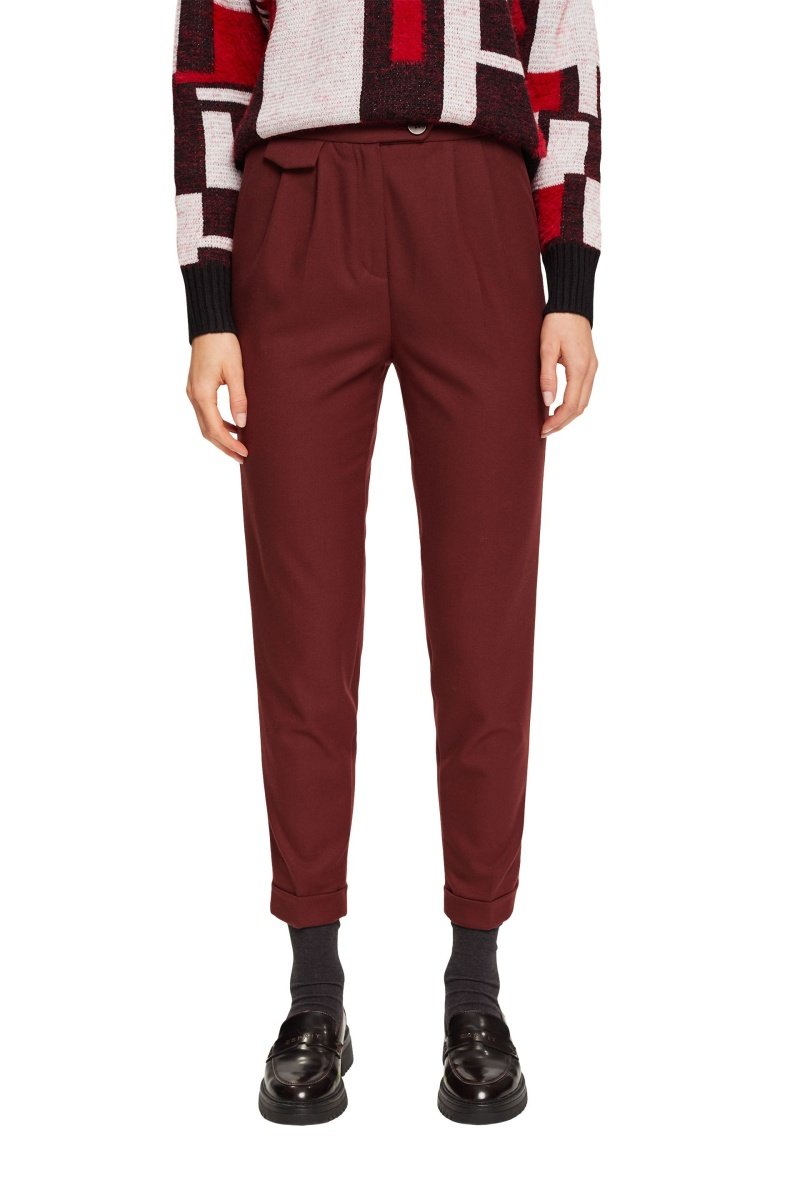 Calças corte cigarro cintura subida - Vermelho-tijolo