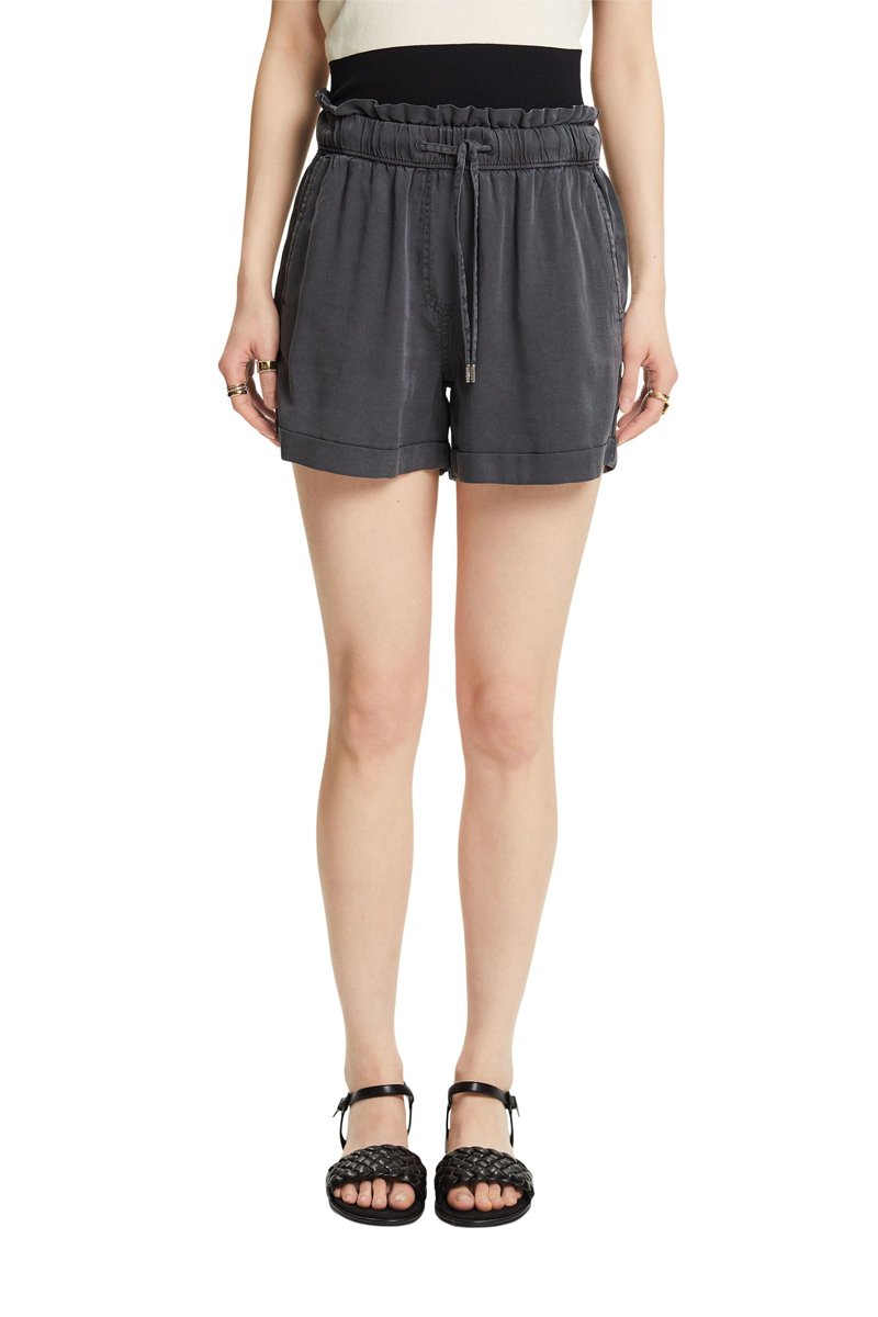 Calções de ganga de cintura subida - Preto