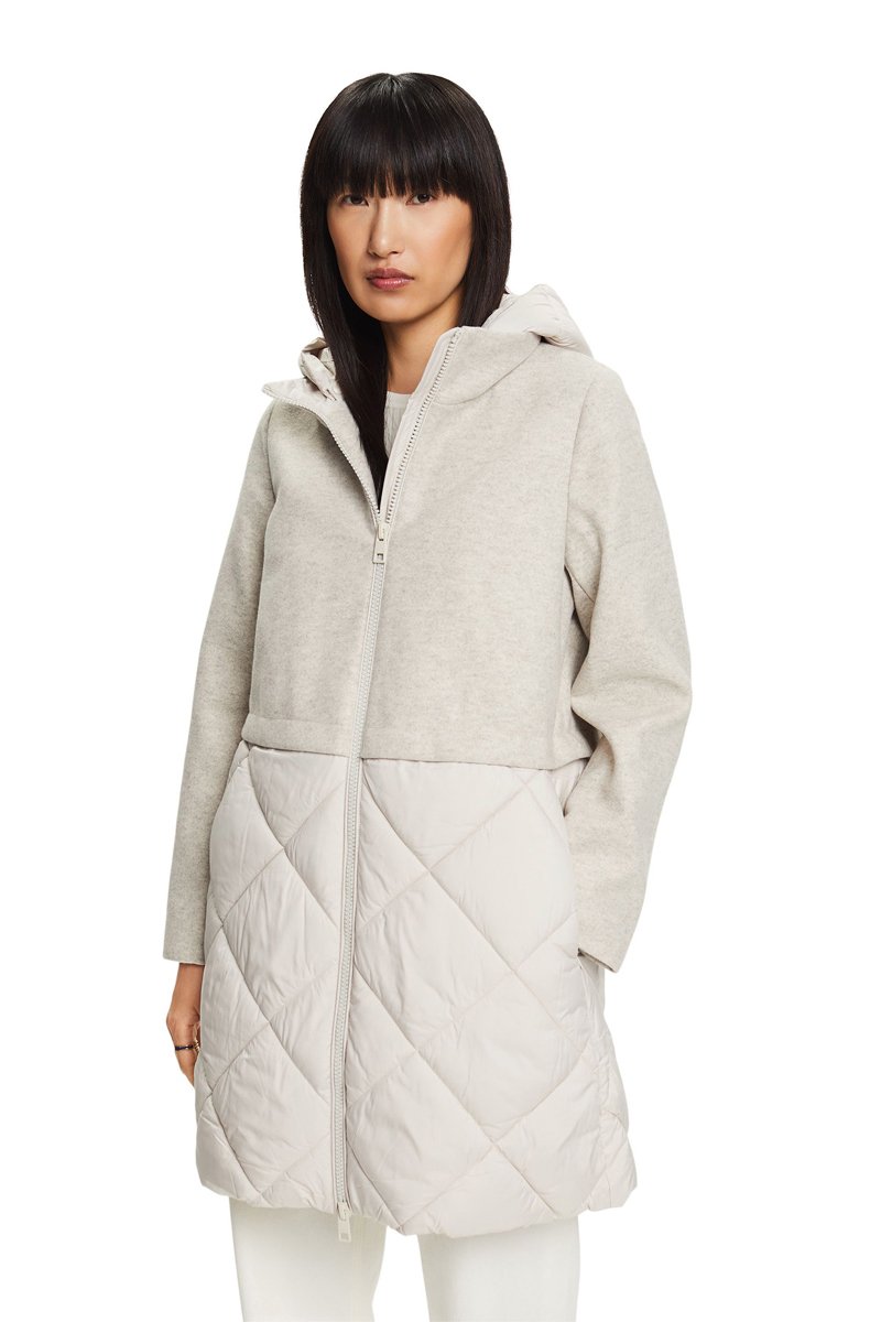 Aplicações efeito acolchoado no capuz, à frente e atrás.