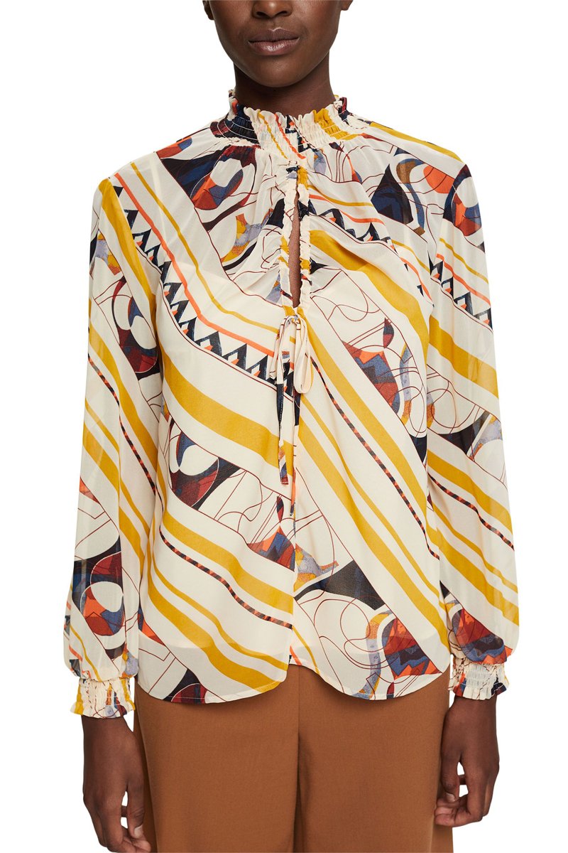 Smocks no decote e nas mangas.