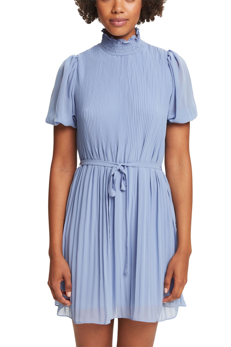 Vestido plissado - Azul-claro