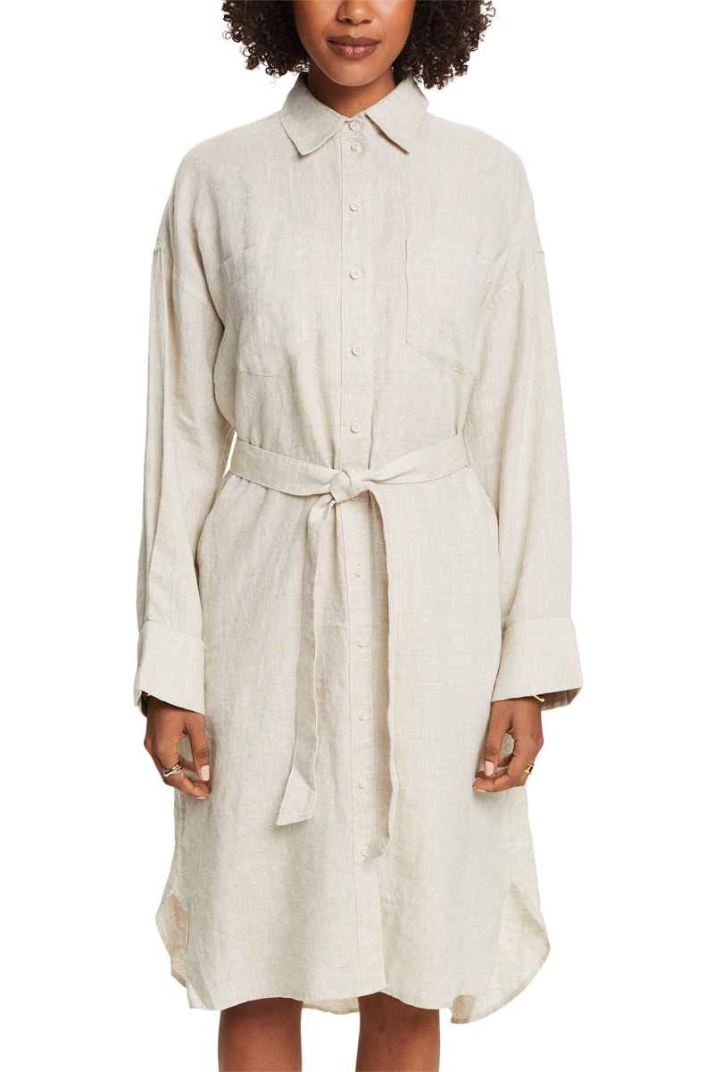 Vestido-camisa em linho - Bege