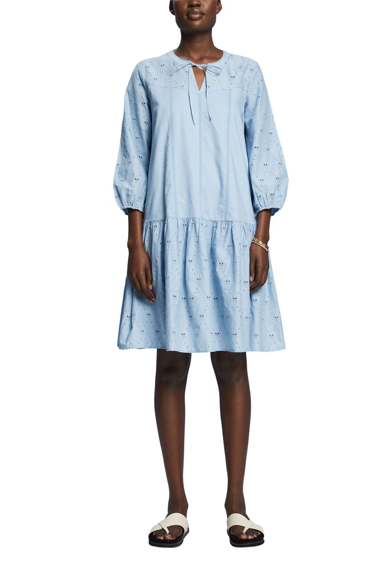 Bordado inglês nas mangas, à frente, atrás e na saia.