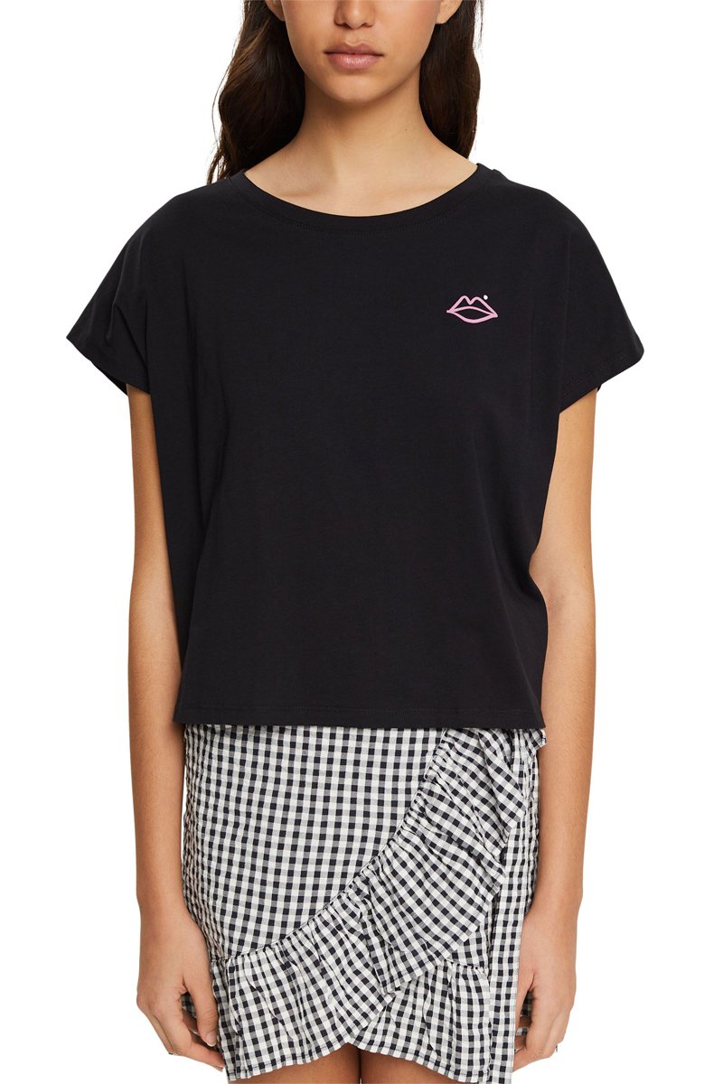 T-shirt de mangas curtas estilo morcego.
