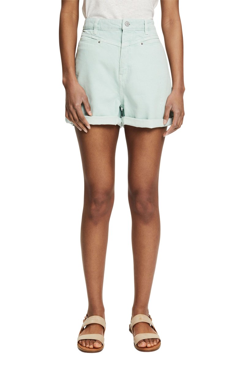 Calções de ganga cintura subida - Verde-água