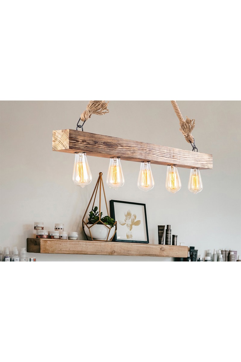 Candeeiro suspenso em madeira Erebos - Natural - 5 x 40 W