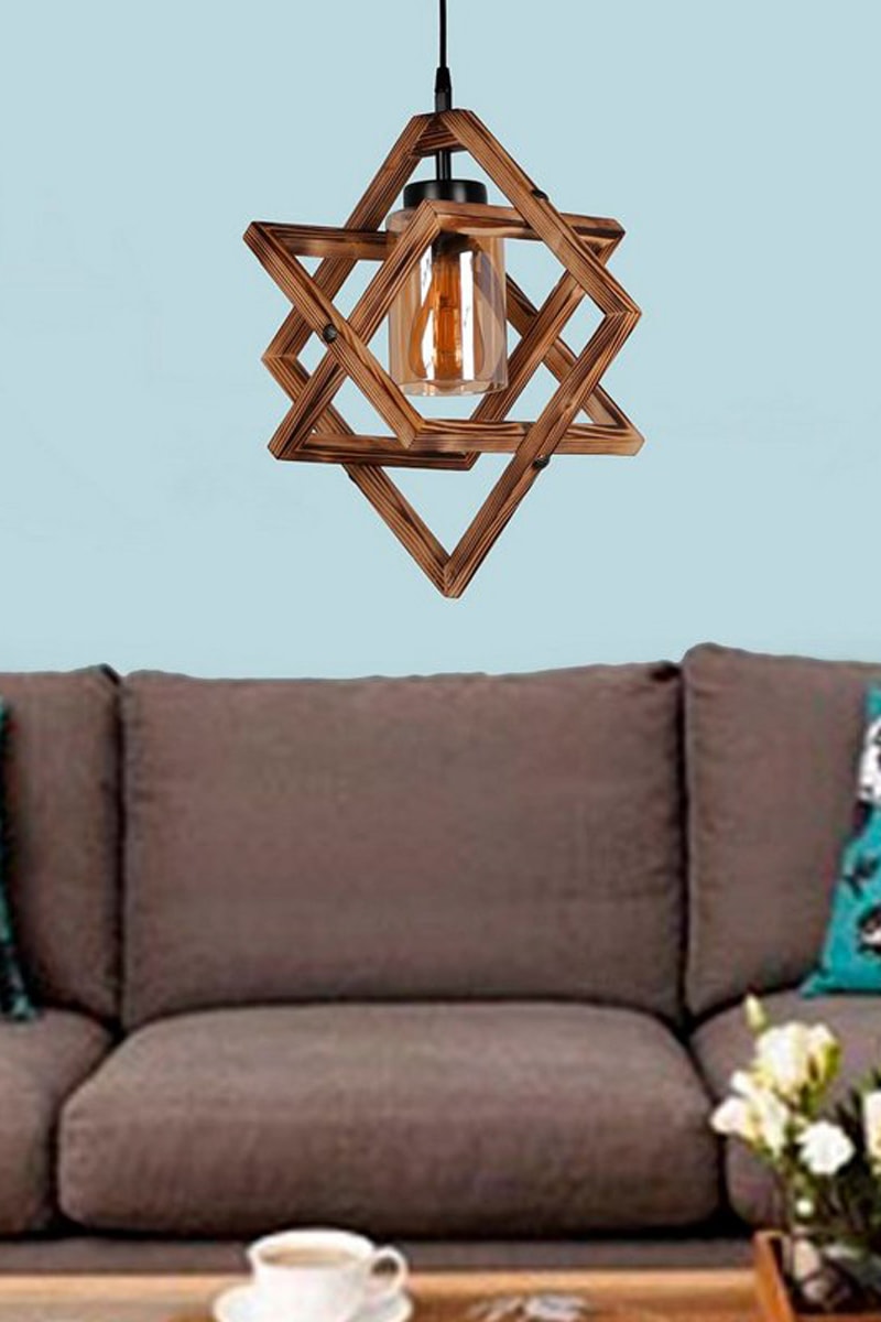 Candeeiro suspenso em madeira Berlin Ahsap Tekli Sarkit Yanik - Natural e preto