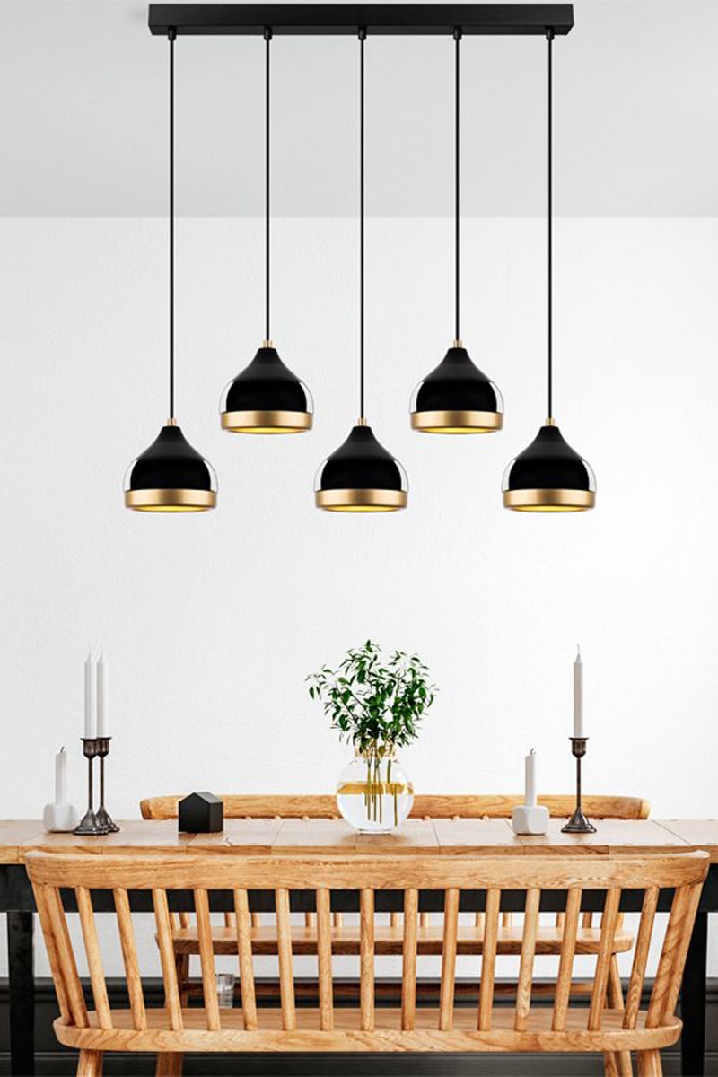 Candeeiro suspenso Yildo - Preto e dourado - 5 x 40 W
