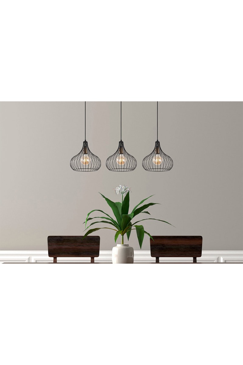 Candeeiro suspenso Teldamla - Preto e latão - 3 x 40 W