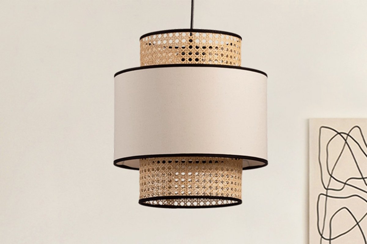 Candeeiro suspenso em rotim - Preto e bege - 60 W