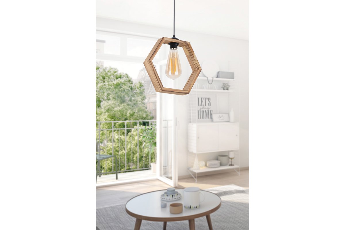 Candeeiro suspenso em madeira - Natural e preto - 45 - 60 W