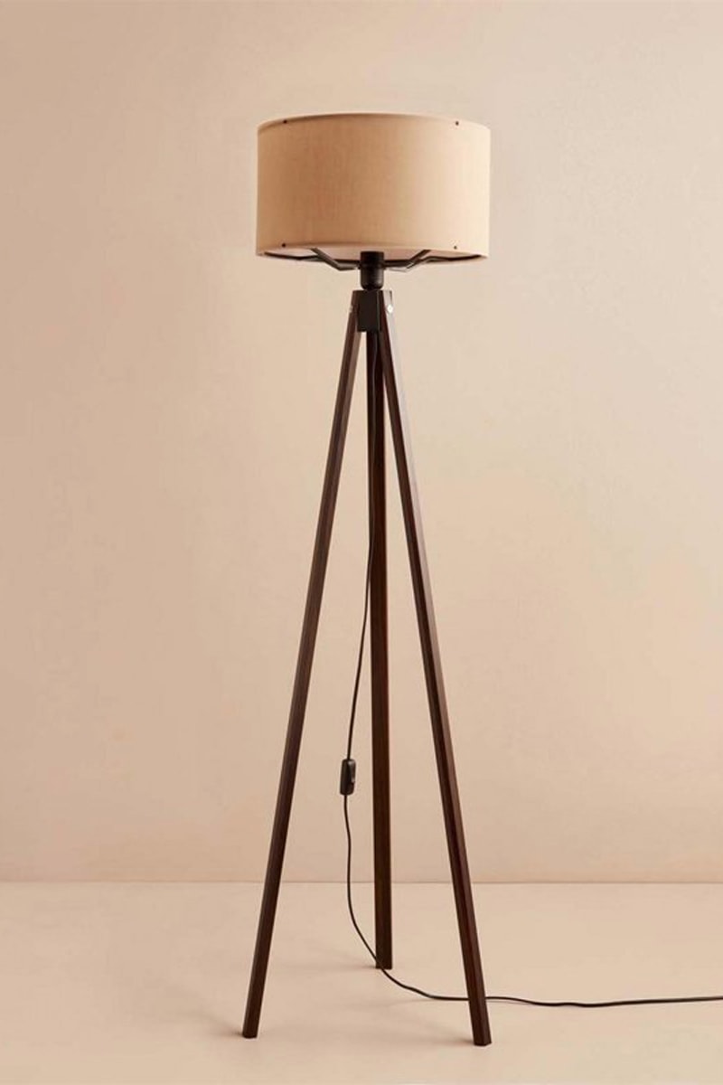 Candeeiro de pé de madeira - Natural e creme - 60 W