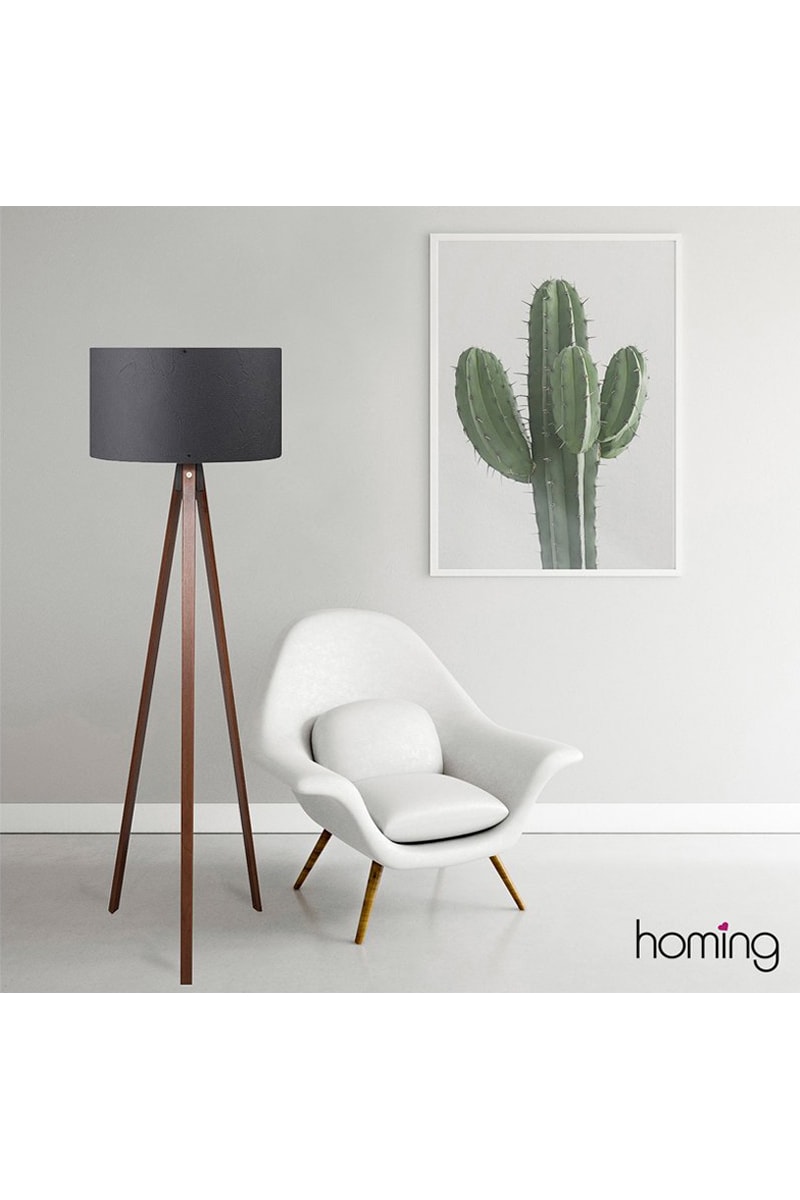 Candeeiro de pé - Cinzento e castanho - 60 W