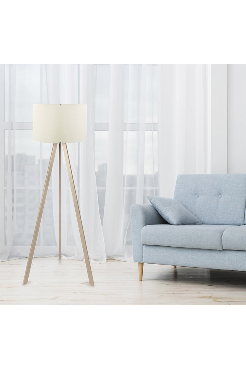 Candeeiro tripé - Branco e imitação de carvalho - 60 W