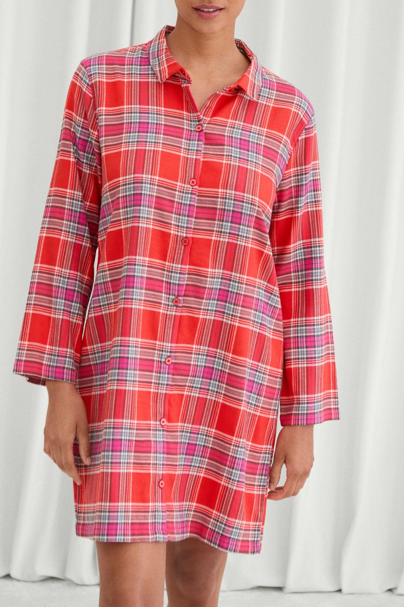 Camisa de dormir Chalet - Vermelho e rosa