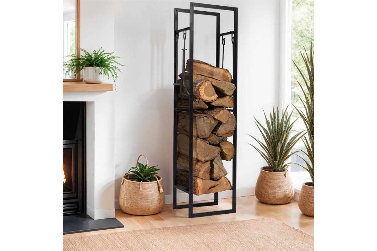 Suporte de lenha vertical e acessórios - 45 x 170 x 30 cm