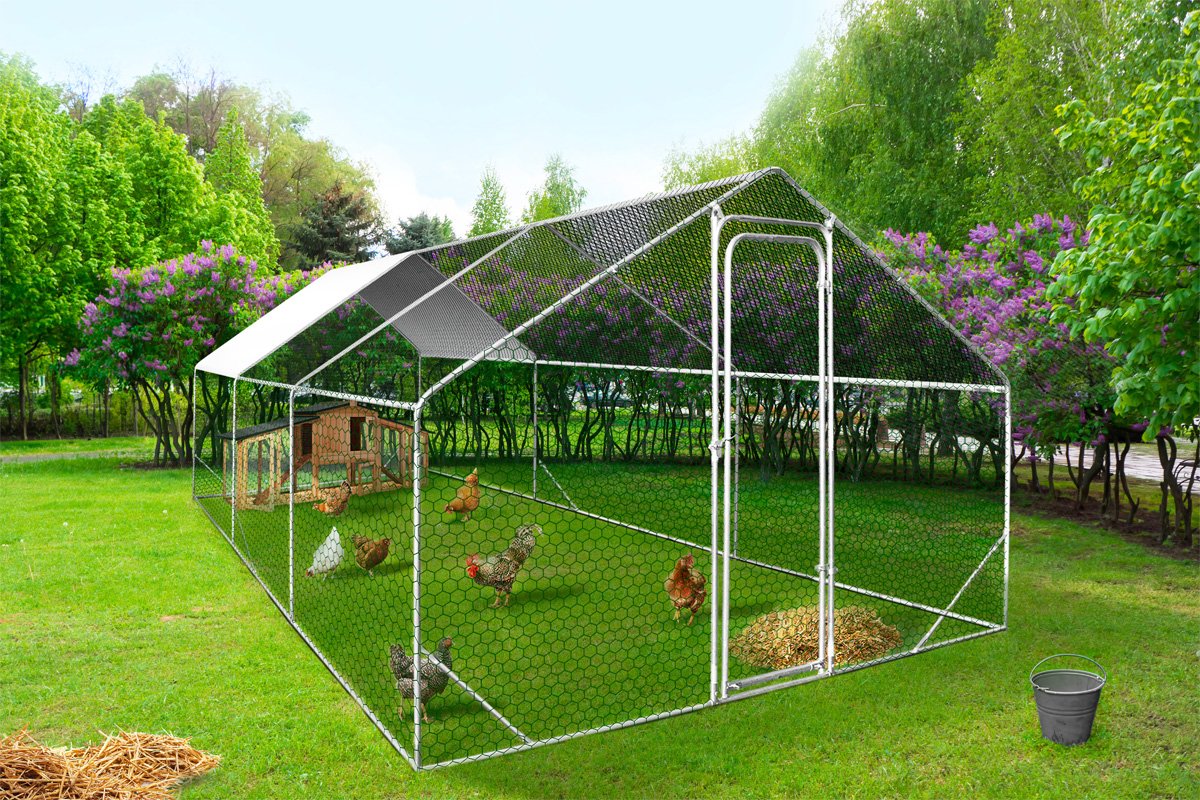Para máximo conforto, instale um galinheiro no recinto para dar abrigo às suas galinhas durante o mau tempo!