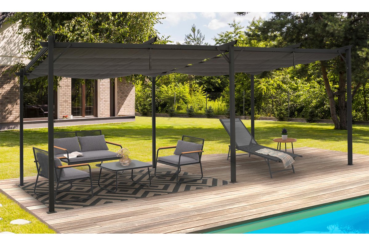 Quer desfrutar do ar livre enquanto se protege do sol ou, pelo contrário, desfrutar sem ter de se mexer? Graças a esta pérgola, pode sombrear instantaneamente a sua área de relaxamento ou filtrá-la de acordo com os seus desejos. O seu teto de lona deslizante duplo de qualidade garantirá uma utilização rápida e eficiente. Esta pérgola moderna e elegante encontrará facilmente o seu lugar no seu exterior, ao mesmo tempo que lhe dará um design único. As 6 persianas incluídas bloqueiam os irritantes raios solares. Fácil de instalar, pode movê-los facilmente para onde quiser.