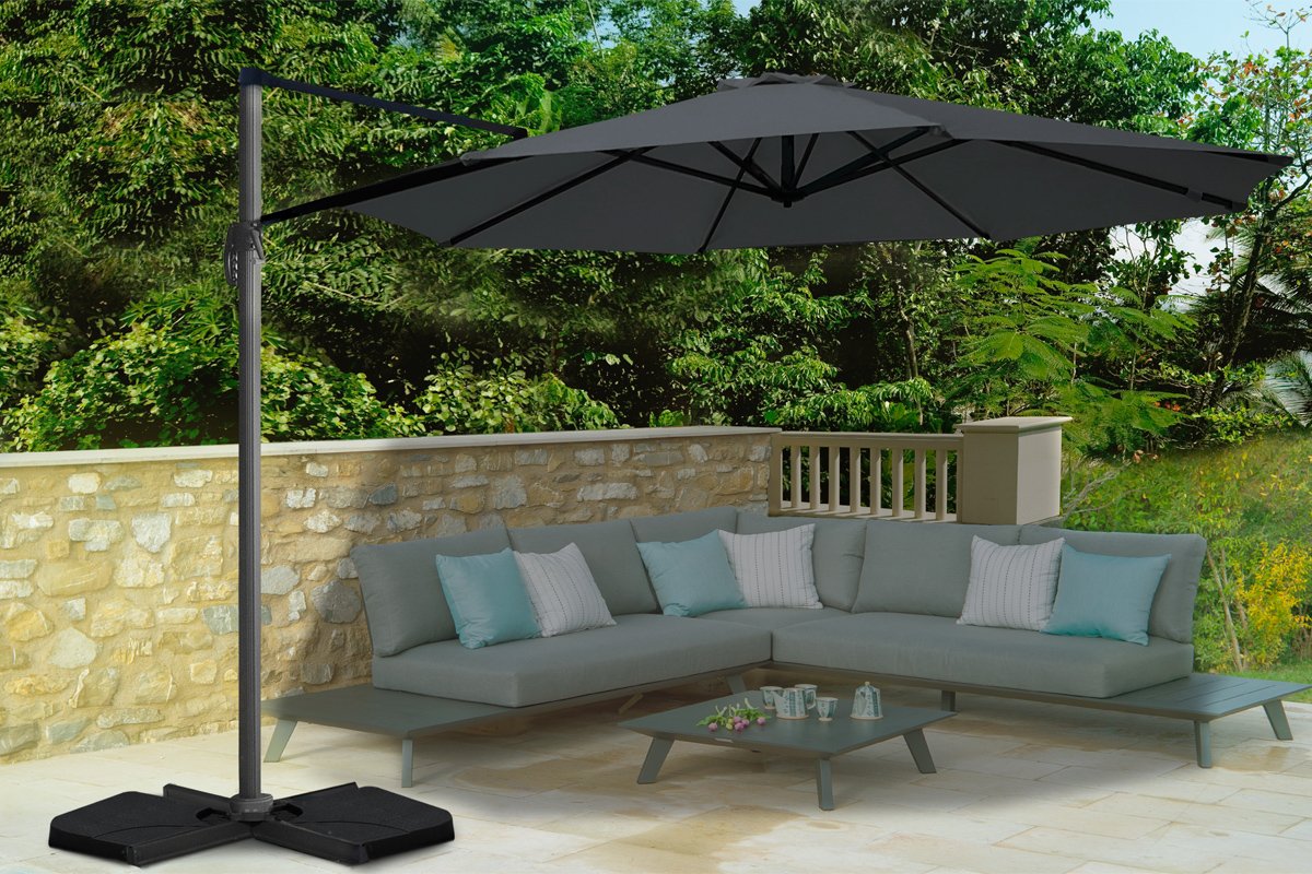 Guarda-sol redondo 360º descentrado com capa e pé - 3 m
