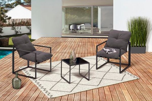 Composição: aço, poliéster 180 gr/m² e vidro temperado
