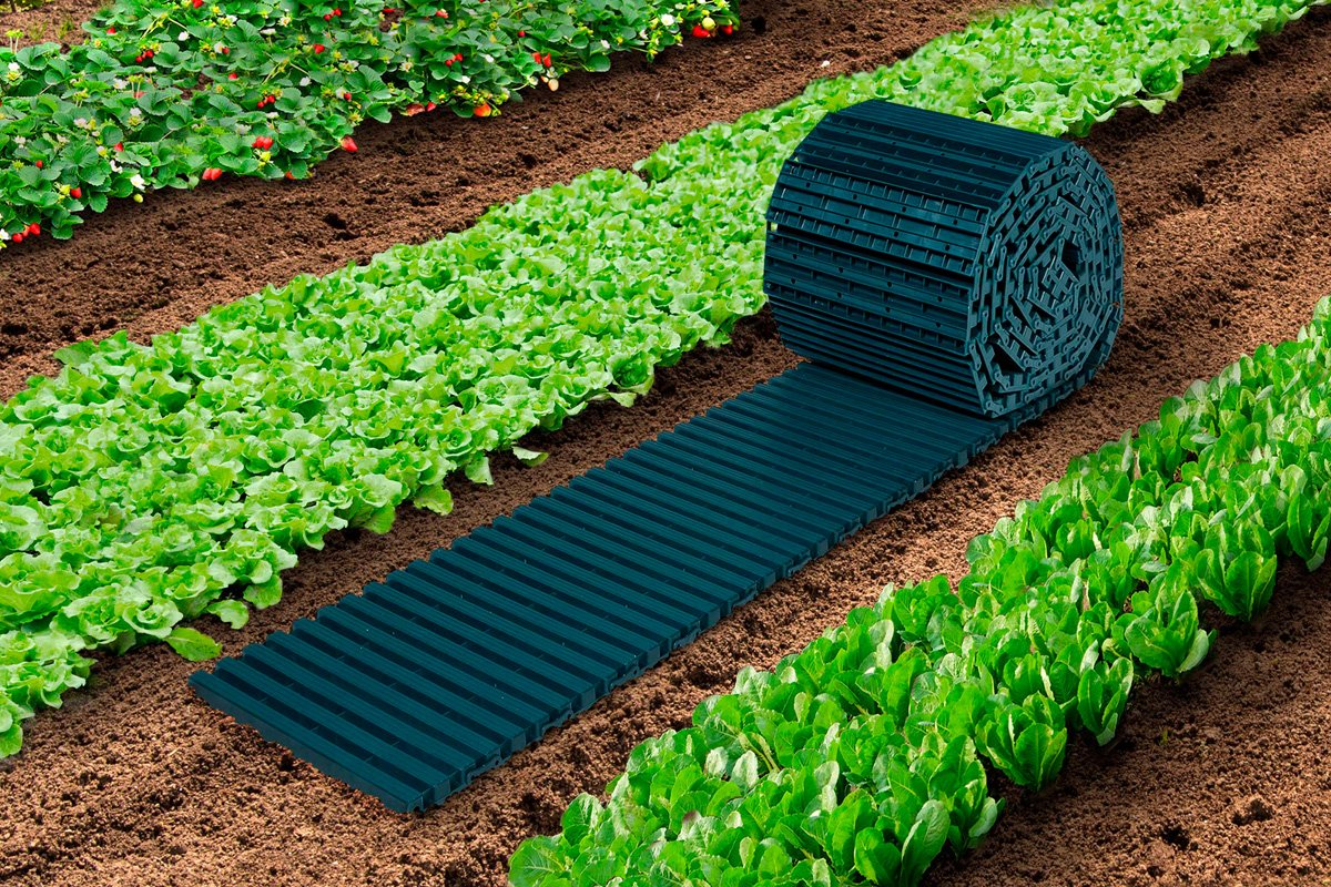 Um caminho de desenrolar, para aceder à sua horta sem a deformar.