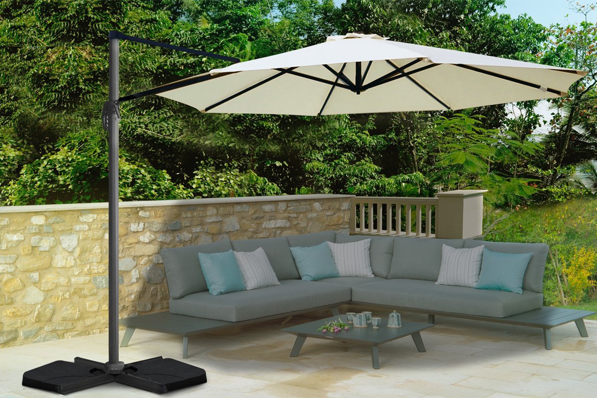 Guarda-sol redondo 360º descentrado com capa e pé - 3 m