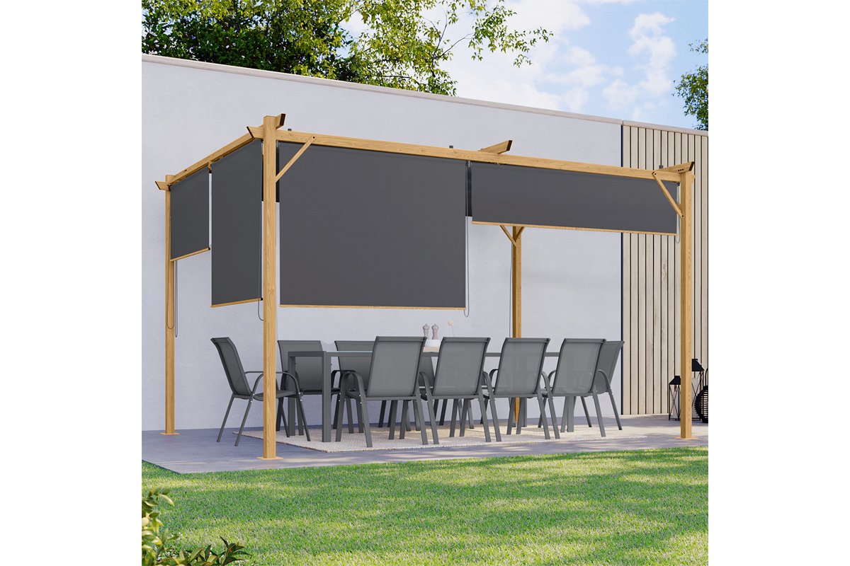 Pérgula com teto retrátil e 4 estores Marina - 395 x 220 x 290 cm