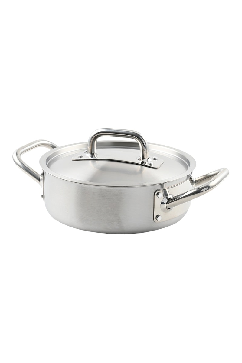 Coração espesso em alumínio para uma rápida e homogénea difusão do calor e uma excelente retenção da temperatura.