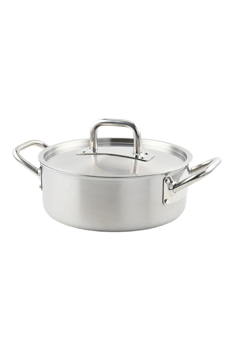 Coração espesso em alumínio para uma rápida e homogénea difusão do calor e uma excelente retenção da temperatura.