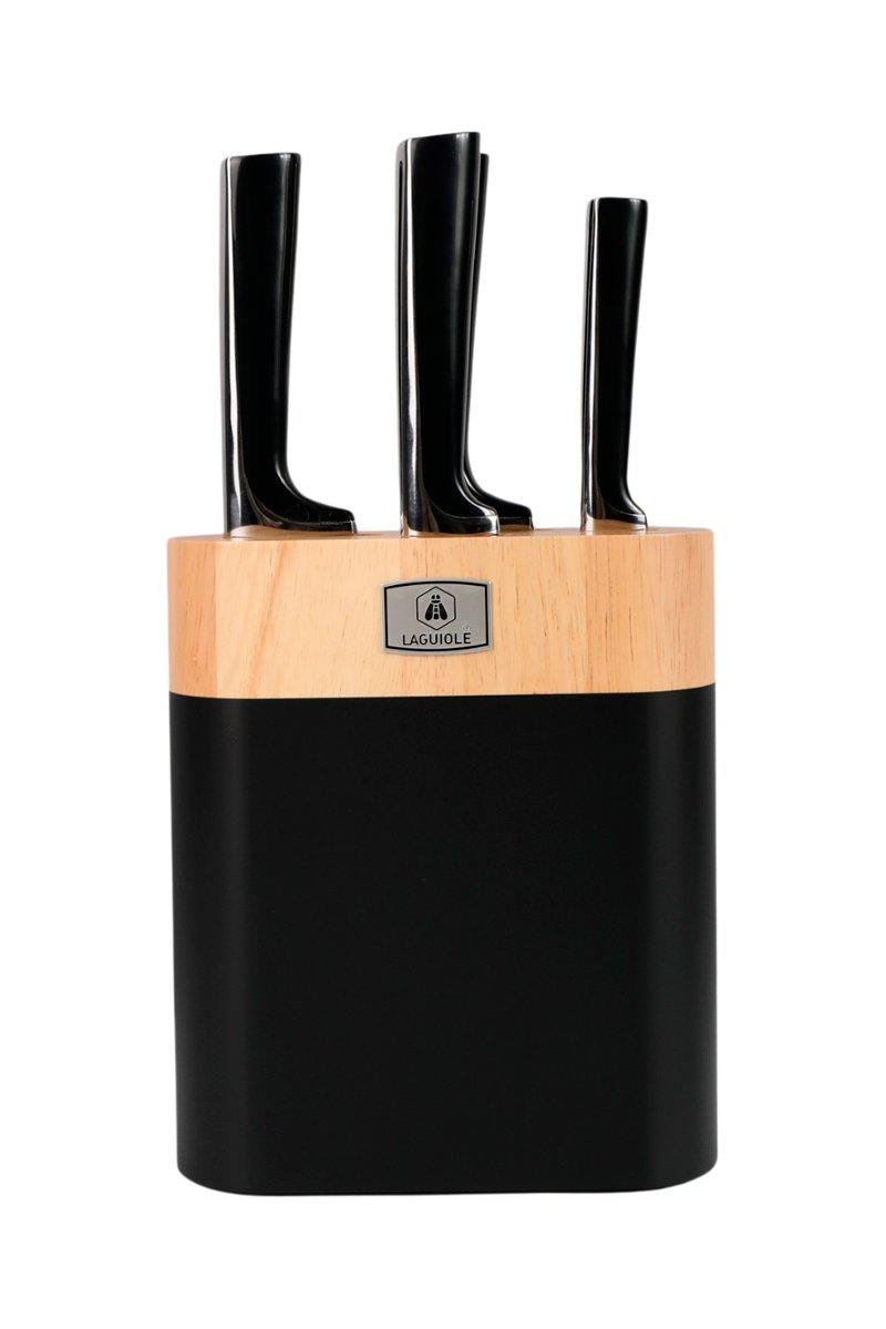 4 facas de aço inoxidável 3CR13 e bloco de arrumação em madeira de hévea ScintiBois